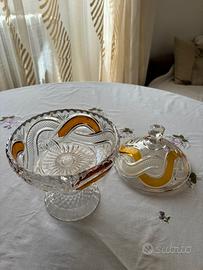 VENDO Ottimo vaso centro tavola con coperchio in cristallo lavorato, ottimo come centro tavola, porta oggetti o porta caramelle. Prezzo 38