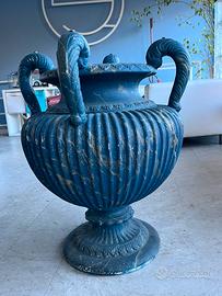 Vasi in ghisa di grandi dimensioni in stile neoclassico, dimensione altezza 80 cm, diametro circa 60 cm condizioni ottime. Perfetta in tutto. In più Regalo anche piano in vetro da usare come tavolo scheggiato in più punti. Oggetto ideale per arredamento di interni di grandi appartamenti oppure anche per giardini.
