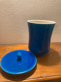 Vaso in maiolica MINTON di colore blu intenso smaltato . Pezzo originale lo si può constatare dal tibro sul fondo con corona e probabile data dl fabbricazione.