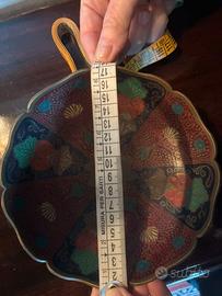 Elegante ciotola in ottone smaltato decorato a mano con motivi floreali. Diametro: 17cm Altezza: 6cm #arredo #arredocasa #vintage #vaso #portafrutta #ottone #amano #modernariato