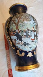 Vaso in porcellana Capodimonte blu cobalto ed oro in stile Napoleone III Limoge Rehaussè Maine In perfette condizioni. Diametro base 12cm Diametro bocca 12cm Diametro pancia 18cm Altezza 32cm