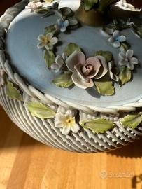 Vaso integro, il coperchio purtroppo ha perso qualche petalo! Bellissima lavorazione, peccato non sia perfetto. Svendo!