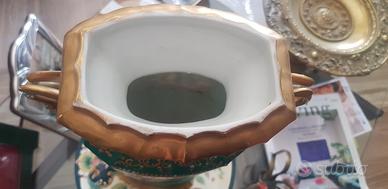 Vaso in porcellana francese a fondo verde e oro, 1850 circa.