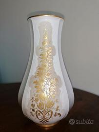Manifattura "Fürstenberg" (fondata nel 1747) vaso antico sfaccettato ad ampolla in porcellana; fondo chiaro con pregevoli decorazioni floreali dorate.
