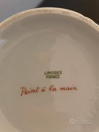 Vaso decorativo in porcellana di Limoges (Francia), dipinto interamente a mano, con elegante motivo floreale a iris viola e delicati