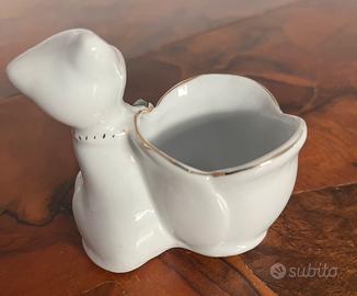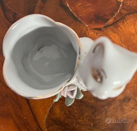Vaso - Piccola porcellana bianca con gatto, fiori e dettagli dorati