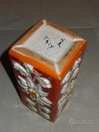 Vaso in porcellana smaltato rosso e con decorazione a fiori - artigianato anni '60