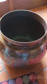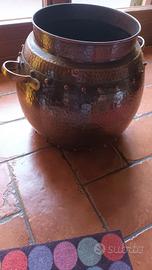 Stupendo vaso in rame martellato con finitura patinata e manici in ottone diametro 26 cm in alto e 30 cm alla basa altezza cm 28 peso circa 3.5 kg