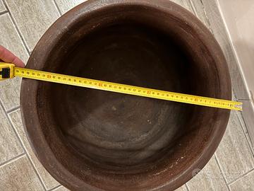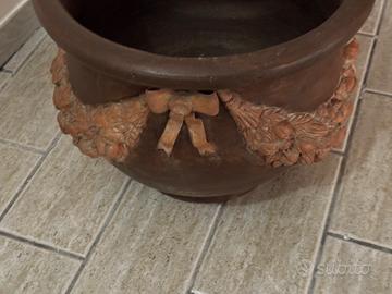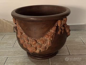 vaso/portavaso in terracotta decorata, con festoni floreali in rilievo, stile classico/neorinascimentale. Di ottima fattura perfetto