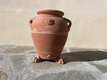 Vaso toscano in terracotta fatto a mano, altezza circa 40 cm e diametro massimo di circa 35 cm, incluso 3 piedi in terracotta fatti a mano