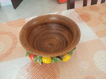 Bellissimo vaso da utilizzare come arredamento o se si vuole come portaoggetti o portafrutta. Impreziosito da decori di foglie e frutti decorati e dipinti a mano.