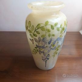 Raro e particolare oggetto da collezione originale anni 50', si tratta esattamente di un vaso in vero alabastro originale dell'epoca in ottimo stato nessuna imperfezione perfettamente conservato con decorazioni floreali dipinte a mano.