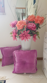 Splendido vaso bianco in vetro abbinato a 9 fiori grandi in tessuto più foglie . Possibile acquistare i cuscini dello stesso colore a 10 euro l uno
