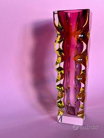 Ogni dettaglio di questo vaso riflette la maestria artigianale cecoslovacca dell’epoca, con un uso innovativo del vetro stratificato e tagliato, rendendolo un vero pezzo d’arte. Perfetto per gli amanti del design vintage e per collezionisti di vetro artistico, questo vaso è un’aggiunta straordinaria a qualsiasi collezione o arredamento.