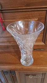 Bellissimo Vaso vetro/cristalli decorazione in incisione con dei fiori alto 30 cm e molto compatto e solido dal peso di circa 2 Kg