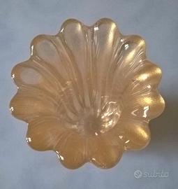 Corpo in vetro di Murano trasparente a costoloni con inclusioni d’oro e bolle.