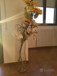 mazzo di margherite e orchidee finte a scopo decorativo materiale sintetico in bellissimo vaso di vetro cilindrico.la composizione vaso fiori è alta più di un metro e mezzo.Ritiro a mano su Brindisi città,non spedisco.