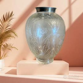 Vendo splendido vaso in vetro inciso, decorato con un raffinato motivo floreale realizzato con tecnica artigianale. Il design leggermente bombato dona eleganza e armonia, rendendolo perfetto sia come complemento d’arredo sia per esporre fiori freschi o secchi.