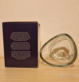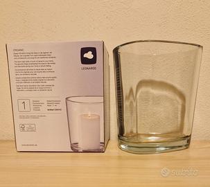 Vaso portacandele antivento in vetro pesante dalla piacevole forma irregolare della ditta tedesca Leonardo, h 17 cm. Adatto anche come contenitore per capsule di caffè, fiori o altri oggetti.