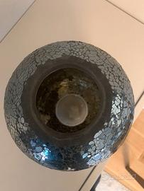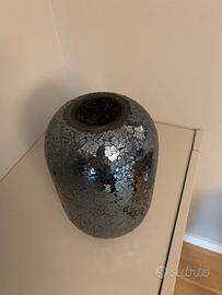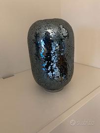 Vaso in vetro di produzione veneziana. Vetro spesso di base trasparente con applicazioni di scurante e fusione a caldo di una superficie specchiante a craqueler. L'effetto finale rende il vaso molto singolare per il continuo mutare dei colori. Altezza cm. 30.