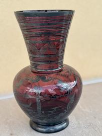 Vendo vaso in vetro, con decorazioni argentate di venezia. Altezza 26 cm