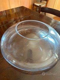 Vaso in vetro dall'originale forma tonda e schiacciata. Diametro base 35cm, imboccatura 17cm altezza 13cm. Ideale per interni ed esterni.
