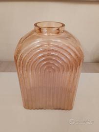 Elegante vaso in vetro rosa cipria originale vintage, perfetto per arredamenti modernariato, shabby chic e design anni ’80/’90.
