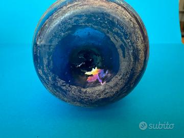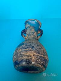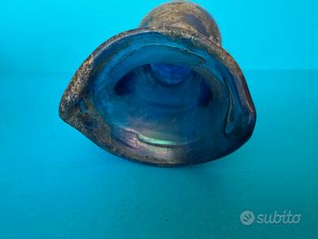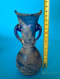 Vaso in vetro "Scavo" di Murano, anni 60 attribuibile a Seguso Vetri d'Arte.Questo tipo di vetro ornamentale è caratterizzato da una superficie ruvida e opaca che imita l'aspetto del vetro antico o archeologico, come se fosse stato "scavato" o ritrovato.L'effetto "scavo" si ottiene applicando polveri speciali, ossidi e sali sulla superficie del vetro incandescente durante il processo di lavorazione, creando una texture corrosa e invecchiata.
