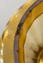 Vaso in vetro soffiato di colore ambra, anni '40/'50 Misure: altezza cm. 30 c.a. Diametro massimo cm. 20 c.a. Diametro base cm. 12 c.a. Diametro bocca cm. 10,5 c.a. Peso Kg. 1 Condizioni ottime (piccolissimo sbecco sul bordo visibile in foto). Spedizione tracciabile con imballo accurato.