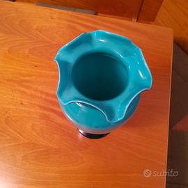 vendo vaso in vetro soffiato di MURANO prodotto negli anni 70 DA CASTALDO designe vetri d'arte MURANO di colore verde acquamarina con lavorazione vetro incamiciato con fiamme sfumate bianco latte. questa lavorazione indica con precisione il produttore e il periodo I riflessi I colori e le sfumature sono incredibili misura cm14,5 diametro base 19cm diametro bocca ,altezza cm40 nuovo mai usato