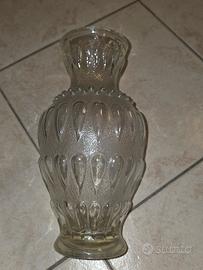 Vaso in vetro trasparente vintage, probabilmente risalente agli anni '50.