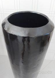 Vaso svasato in vetroresina colore nero. Base non forata. Altezza cm 89, base diametro cm 70, diametro testa cm 119, diametro foro cm 90.