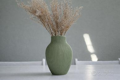 Vaso moderno ispirato al minimalismo giapponese e scandinavo. Le costolature creano un aspetto elegante e sereno, con i bordi inferiori e superiori ispirati al design giapponese.