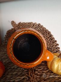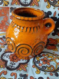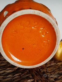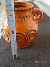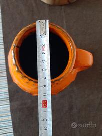 Vaso in ceramica Jasba Keramik ,vintage anni 60. Stile "fat lava" con vivace smaltatura arancione e decorazione a spirale in rilievo colore marrone. In perfette condizioni