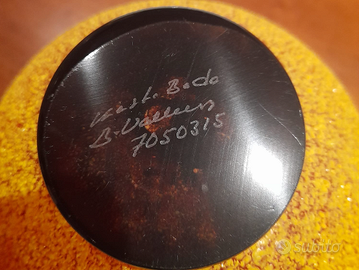 PREZZO RIDOTTO PER TRASLOCO URGENTE Elegante vaso decorativo in vetro artistico firmato Kosta Boda, realizzato dal celebre designer Bertil Vallien. Pezzo autentico con incisione alla base (visibile in foto), produzione svedese di alta qualità. Colore arancione caldo con texture materica e bordo ondulato: ideale come centrotavola o elemento di design in ambienti moderni, industrial o vintage. Dettagli: •Brand: Kosta Boda •Designer: Bertil Vallien •Codice inciso: 7050315 •Materiale: vetro artistico •Dimensioni: altezza 15 cm, diametro 19 cm •Condizioni: ottime, nessuna rottura o crepa Perché ha valore: •Designer riconosciuto a livello internazionale •Produzione artigianale scandinava •Oggetto decorativo distintivo (non mass market generico) Perfetto per chi cerca un pezzo di design nordico autentico o per collezionisti di vetro artistico. Consegna a mano o spedizione disponibile. Possibilità di sconto per il ritiro di persona.