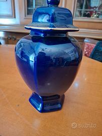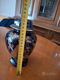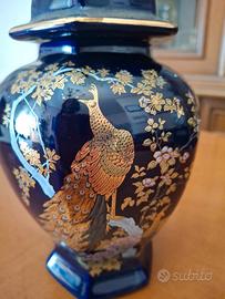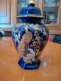 Vaso kutani originale finemente decorato con pavone fondo blu e oro con coperchio altezza cm 20 spedisco anche con imballo accurato e pluriball