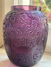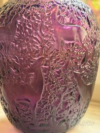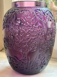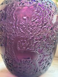 Vaso in vetro ametista Lalique Biches o Cervi . Firmato sotto !! Altezza 17.5 Larghezza 14 cm Profondita’ 14 cm In vendita usato a 1470, 00 euro . No perditempo