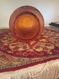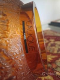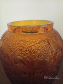 Vaso "Biches" di LALIQUE in vetro color ambra interamente decorato con figure in rilievo. Condizioni perfette.