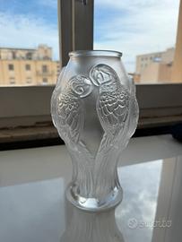 Vaso originale Lalique modello “Perruches” in cristallo satinato e trasparente, firmato Lalique France con marchio ® inciso alla base.