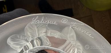 Iconico modello della maison francese Lalique con raffinata decorazione a pappagalli in altorilievo, molto apprezzato da collezionisti e interior designer.