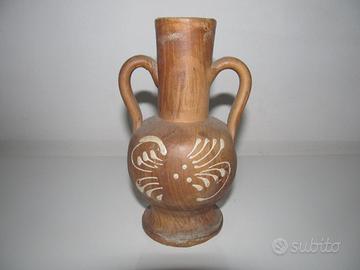 Un ricordo intagliato nel legno, ricco di storia! Questo vaso souvenir di San Mauro Mare, con la sua forma originale e i dettagli dipinti a mano, evoca la nostalgia di viaggi passati. Realizzato in legno con calde tonalità naturali, è un pezzo unico che cattura l'attenzione.