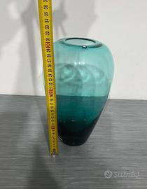Elegante vaso Leonardo in vetro, con sfumature di colore che vanno dal turchese al blu intenso.