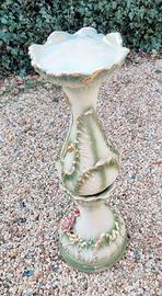 Vaso Majolica alto +/- 1 m, incluso piedestallo. Piccolo danno sul fiore in basso al piedestallo, visibile in foto.