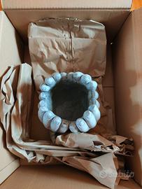 Vaso cementoraffigurante delle mani verticali, da usare comeportafiori o portacandele. Realizzato in cemento.
