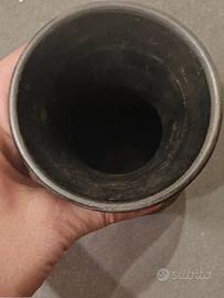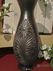 Vaso ornamentale in ceramica nera, realizzato artigianalmente a Marginea, Romania. Splendida lavorazione a rilievo con motivi floreali stilizzati, finitura lucida e opaca che valorizza ogni dettaglio. Oggetto di arte popolare, raro e autentico, ideale per collezionisti o per dare un tocco etnico e raffinato agli ambienti.