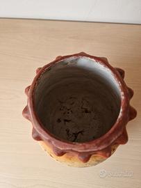 Vaso arte povera in ceramica con graffiti stilizzati tipo preistoria . Altezza 27 cm, larghezza circa 20 cm