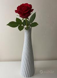 Vaso grigio chiaro con particolare lavorazione a spirale e finitura opaca puntinata effetto marmo/granito. Ideale per ambienti moderni o in stile Hygge. Molto leggero e decorativo.