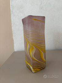 Moderno vaso estremamente elegante e raffinato, decorato con venature gialle e bianche su sfondo viola.