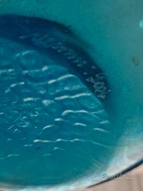 Vaso Venini modello Balloton in Vetro di Murano azzurro con filo blu, diametro 16 cm.