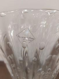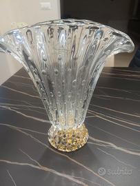 Vaso a forma di ventaglio in vetro cristallo Veneziano con particolare effetto decorativo (“Bullicante” gergo veneziano) utilizzato dai vetrai muranesi, che consiste in delle piccole bolle d’aria che vengono immerse nel vetro. Il vaso realizzato nelle officine Muranesi di Barovier & Toso. Misure; altezza totale cm.30 larghezza bocca del vaso cm.28, altezza piede vaso cm.6 e diametro cm.12. Spedizione a carico acquirente, imballaggio professionale